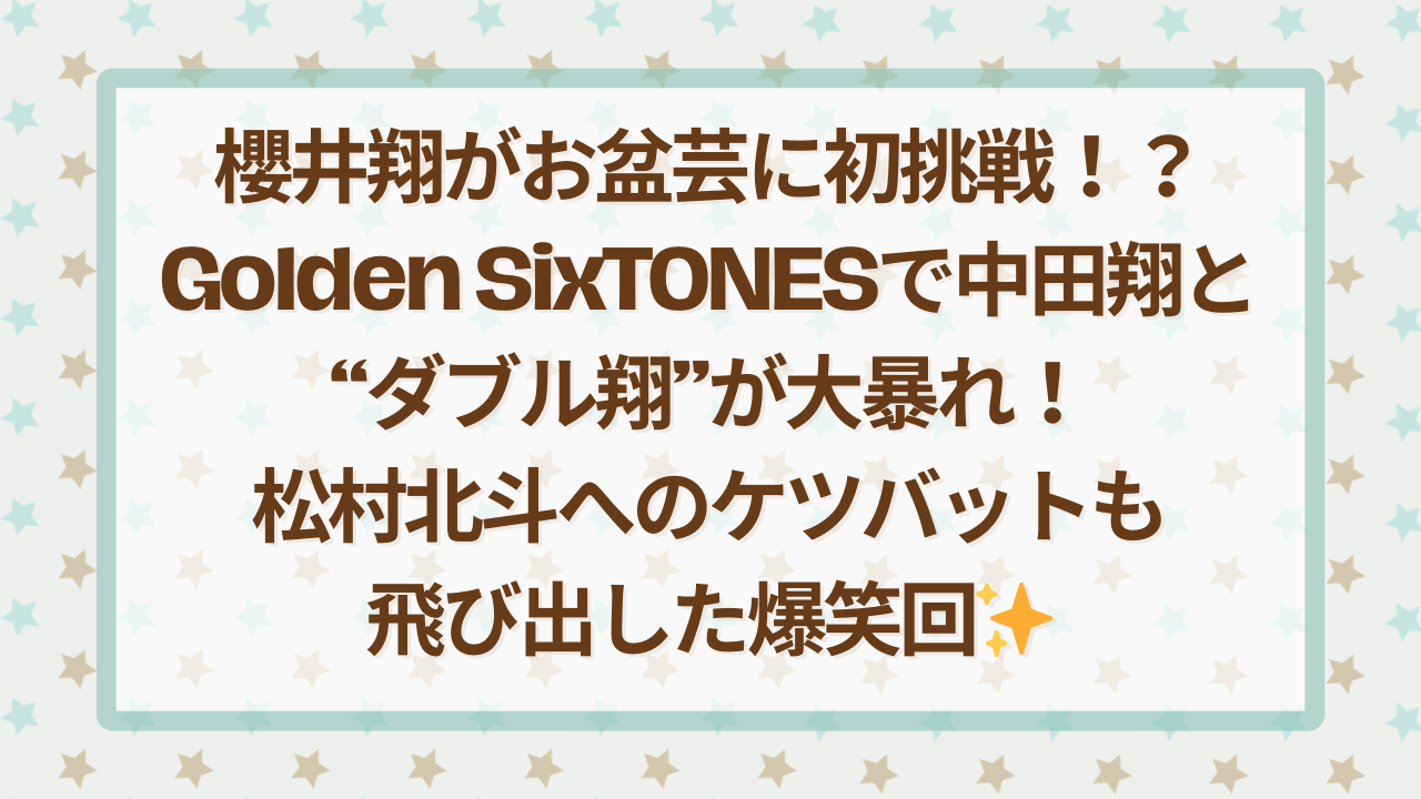 2月1日放送の『Golden SixTONES』、ゲストは櫻井翔さんと、プロ野球選手の中田翔さんという豪華すぎる「ダブル翔」さんでした。