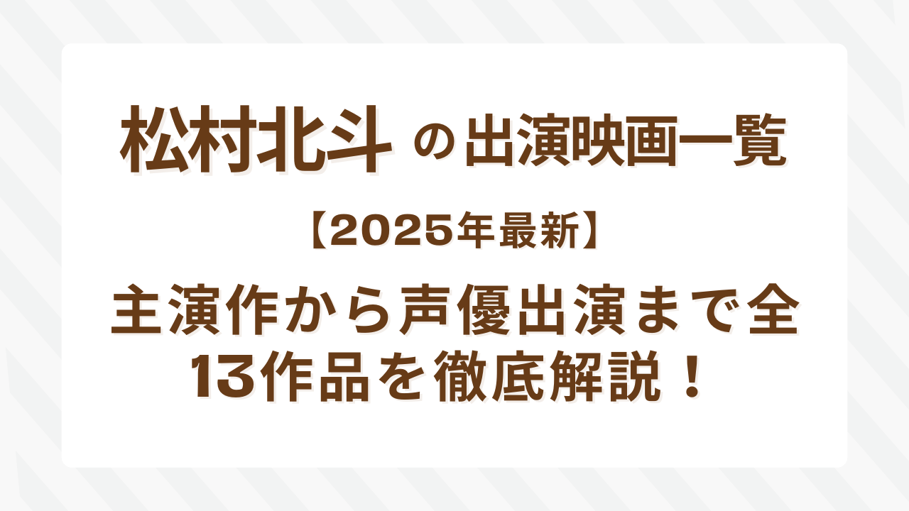松村北斗の出演映画一覧【2025年最新】主演作から声優出演まで全13作品を徹底解説!