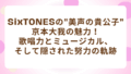 ジェシーさんは、京本大我さんと並びSixTONESのリードボーカルを担っています。彼の歌声の最大の魅力は、曲の世界観に合わせて自在に色を変える「表現力」にあります。