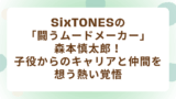 その明るさと優しさで、時に傷つきそうになるメンバーを大きな愛で包み込み、グループに安心感を与えているジェシーさん。彼の持つ繊細さと、それを上回る深い包容力こそが、SixTONESのムードを支える土台となっているのですね。