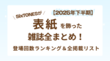 この記事では、2025年上半期(1月〜6月)にSixTONESが表紙を飾った全雑誌を月別にまとめました。登場回数のランキングもあわせて掲載していますので、推し活の振り返りや買い逃しチェックにぜひご活用ください!