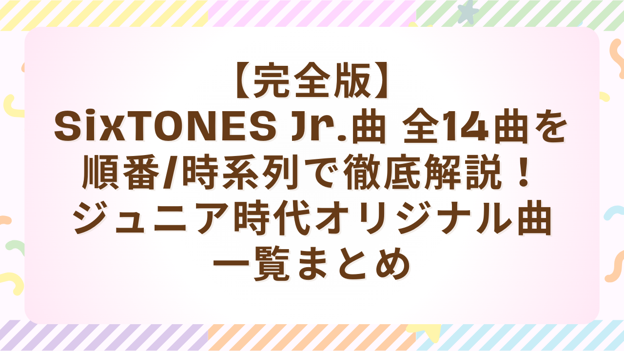 - SixTONES ジュニア曲 全14曲を「発表順/時系列」で完全リスト化!